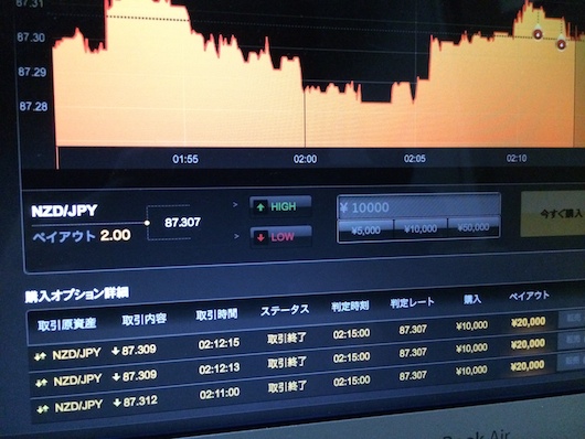 結果から言うと、5回エントリーして、プラス¥14000-でした。