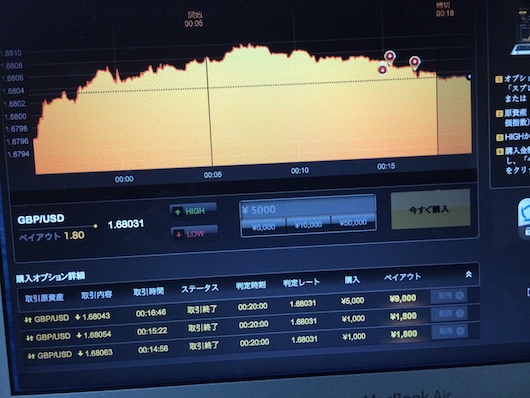 しかし、いきなりバイナリーオプション(BO)で8本勝負して全負け。